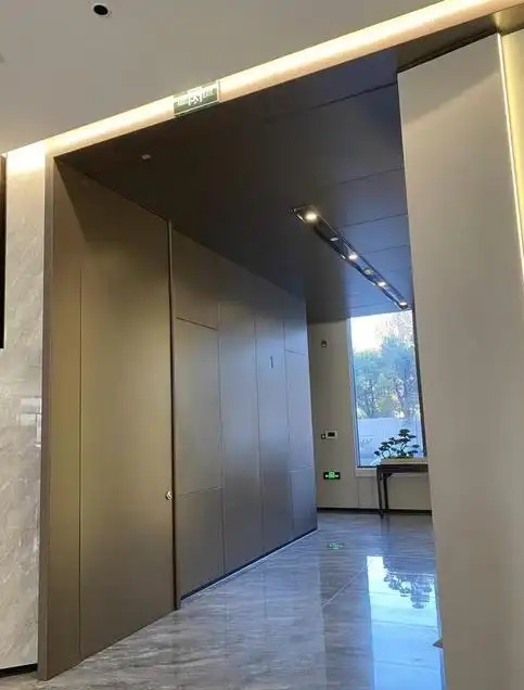 1、隱藏折疊防火門采用多扇折疊組合設(shè)計(jì),通過鉸鏈連接形成可收折的門扇單元,配備自動(dòng)關(guān)閉裝置,火災(zāi)時(shí)高溫觸發(fā)自動(dòng)閉門功能,無(wú)需人工操作。